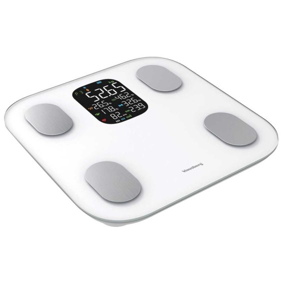 - Zaawansowana technologia pomiarowa pozwala na analizę szerokiego zakresu parametrów, takich jak masa ciała, BMI, zawartość tkanki tłuszczowej, nawodnienie organizmu, mięśnie szkieletowe, masa kostna, białko, tłuszcz trzewny, tłuszcz podskórny, beztłuszczowa masa ciała, wiek metaboliczny, somatotyp oraz BMR/AMR. Waga dodatkowo ocenia ogólny stan ciała i mierzy tętno.