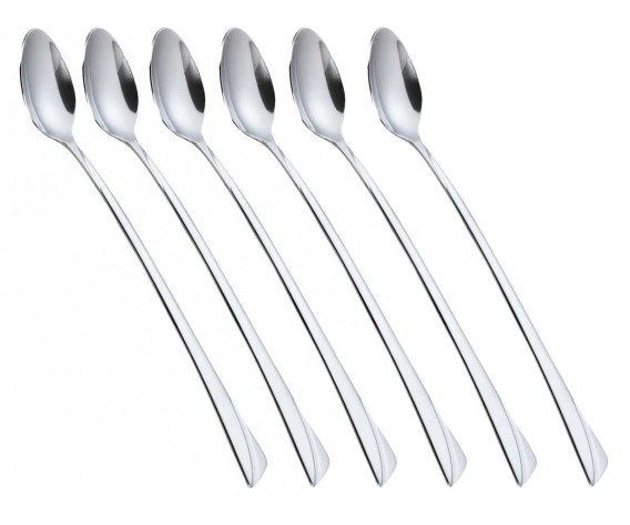 6 łyżeczek koktajlowych ze stali nierdzewnej polerowanej na wysoki połysk.