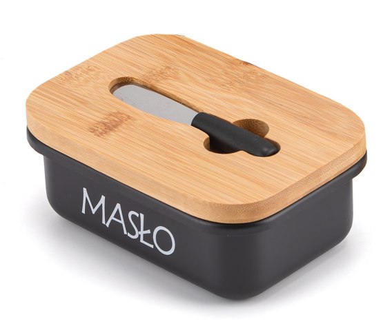 Maselniczka metalowa z pokrywą bambusową i nożykiem do smarowania masła