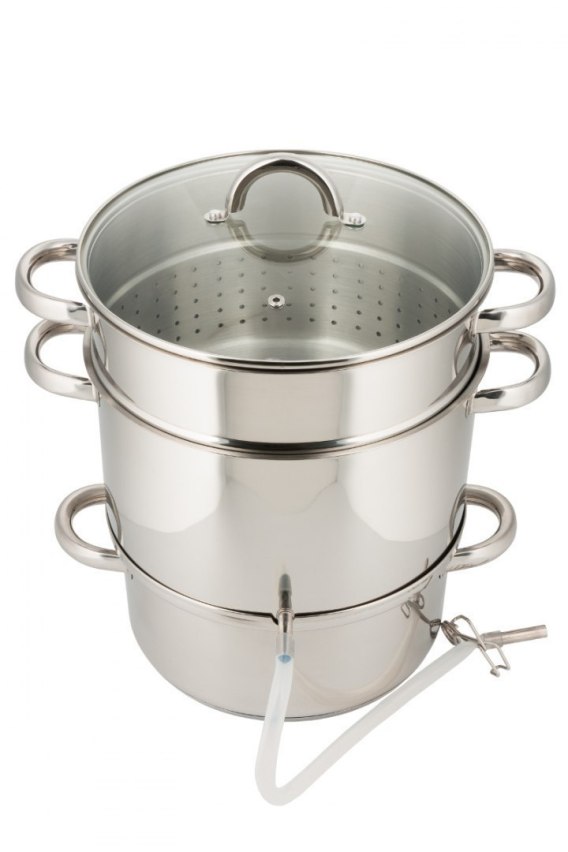 Sokownik daje możliwość aby w prosty sposób zrobić domowy sok z ulubionych owoców lub warzyw. Uzyskujemy sok pasteryzowany a więc możemy go bez problemu przechowywać przez dłuższy okres czasu. Sokownik 8l firmy Kinghoff pozwoli na przygotowanie smacznego soku w maks. 2 godziny. Ten model sokownika przystosowany jest również do stosowania go na kuchenkach indukcyjnych. Potrójne akutermiczne dno zapewni wieloletnią satysfakcję z produktu. Sokownik wykonany jest ze stali nierdzewnej 18/10.