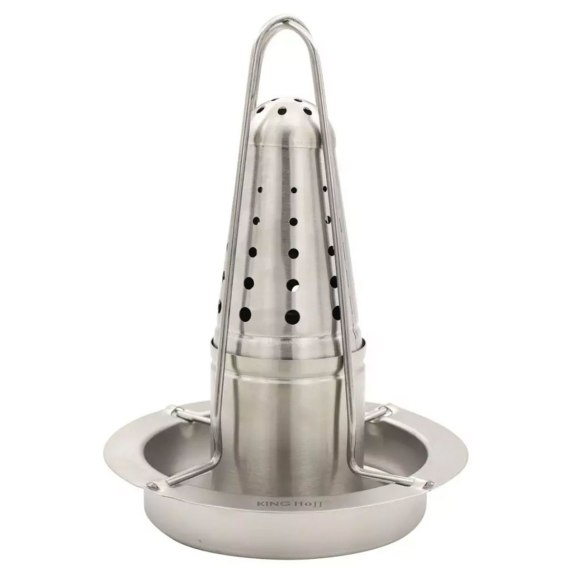 - Stojak na kurczaka z pojemnikiem na przyprawy. Możesz dodać różne przyprawy według uznania i preferencji smakowych. Konstrukcja stojaka na kurczaka posiada wiele otworów, które lepiej rozprowadzają aromat i sprawiają, że grillowany kurczak staje się smaczniejszy.