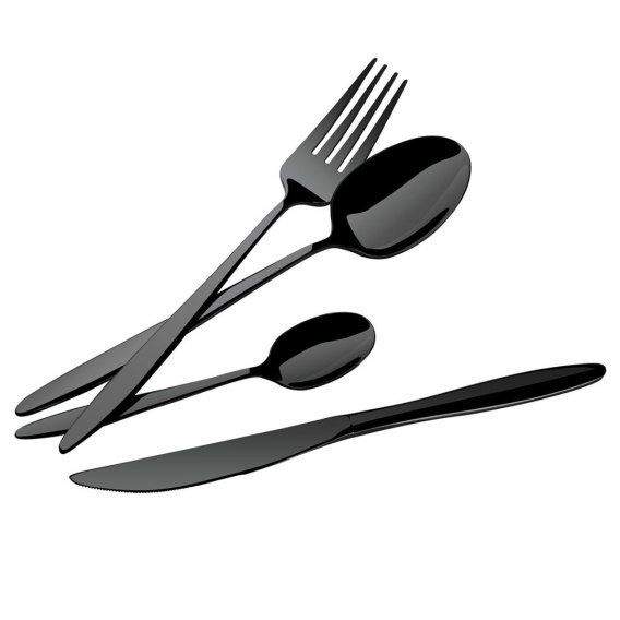 24 elementowy zestaw sztućców firmy BERLINGER HAUS wykonanych ze stali nierdzewnej polerowanej na wysoki połysk w kolorze czarnym.