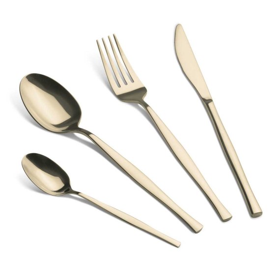 24 elementowy zestaw sztućców firmy BERLINGER HAUS wykonanych ze stali nierdzewnej polerowanej na wysoki połysk, pokryte powłoką PVD w kolorze szampańskim złotym.