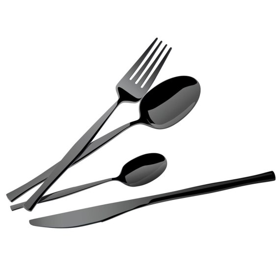 24 elementowy zestaw sztućców firmy BERLINGER HAUS wykonanych ze stali nierdzewnej polerowanej na wysoki połysk w kolorze czarnym.