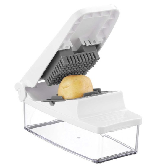 - Wyższa oś centralna i zoptymalizowany kąt nachylenia ostrza umożliwiają szybkie krojenie ziemniaków na frytki o prostym, równym i estetycznym kształcie.