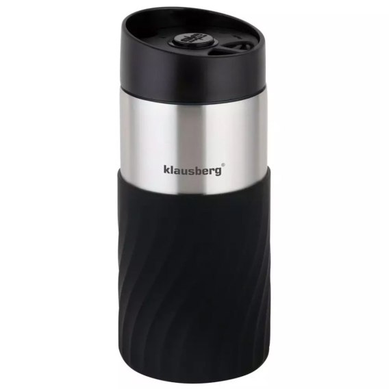 Kubek - termos nowej generacji o pojemności 300 ml firmy KLAUSBERG wykonany ze stali nierdzewnej z izolacją próżniową DOUBLE WALL. Kubek posiada odkręcana pokrywkę z wylewką Click-clack. Przycisk w pozycji OFF zamyka szczelnie kubek i działa on jak termos. Gdy przycisk jest w pozycji ON można z niego korzystać jak ze zwykłego kubka. Z dolnej części kubek wykończony opaską silikonową z falistym wzorem zapewniającą pewny chwyt. Izolacja próżniowa sprawia że kubek długo utrzymuje temperaturę wewnątrz, podobnie jak termos. Podstawa antypoślizgowa. Kubek termiczny Klausberg prezentuje się jako esencja nowoczesnego designu i funkcjonalności. Jego głęboki kolor czerni w połączeniu ze srebrnymi elementami tworzy doskonały kontrast, dodając mu nie tylko elegancji, ale też charakteru.