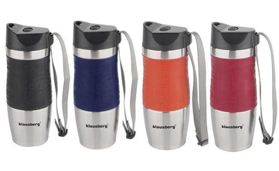 Kubek - termos o pojemności 380 ml wykonany ze stali nierdzewnej z izolacją próżniową THERMO POWER firmy KLAUSBERG. Kubek posiada odkręcana pokrywkę z wylewką Quick Stop. Przycisk w pozycji OFF zamyka szczelnie kubek i działa on jak termos. Gdy przycisk jest w pozycji ON można z niego korzystać jak ze zwykłego kubka. Specjalnie ukształtowany ustnik ułatwia picie minimalizując ryzyko rozlania napoju. Izolacja próżniowa sprawia że kubek długo utrzymuje temperaturę wewnątrz, podobnie jak termos. Silikonowy uchwyt i specjalnie skonstruowana przykrywka pozwalają korzystać z kubka podczas podróży. Silkonowa opaska zapewnia pewny chwyt i uniemożliwia wyślizgnięcie się nawet z mokrej dłoni. Dodatkowo przy pokrywie pasek z regulowaną długością. Można za pomoca niego przymocować kubek do plecaka, paska lub po prostu przenosić kubek.