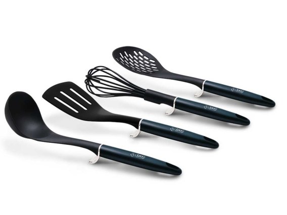 4 elementowy zestaw nylonowych przyborów kuchennych firmy BERLINGER HAUS z linii AQUAMARINE. Przybory polecane szczególnie do naczyń z powłokami ceramicznymi i teflonowymi. Materiał z którego są wykonane nie rysuje powierzchni naczyń. Jest odporny na wysoką temperaturę do 210 stopni C. Posiada szczególne właściwości antybakteryjne.