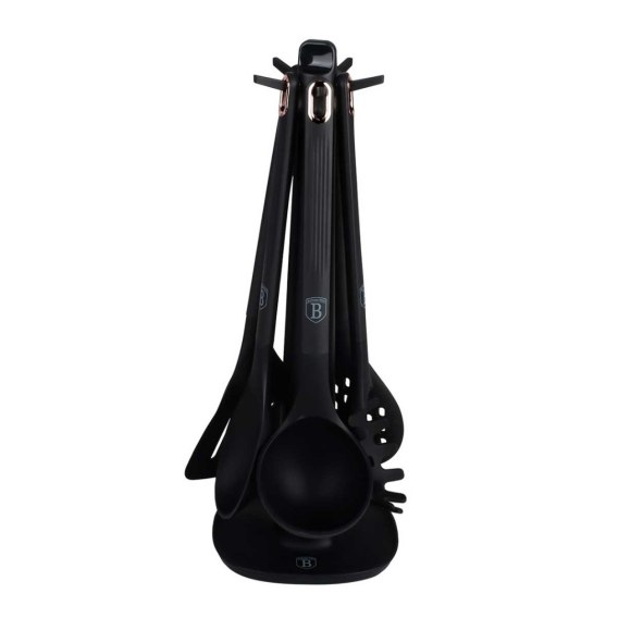 6 elementowy zestaw nylonowych przyborów kuchennych firmy BERLINGER HAUS z linii Black Rose Collection. Przybory polecane szczególnie do naczyń z powłokami ceramicznymi i teflonowymi. Materiał z którego są wykonane nie rysuje powierzchni naczyń. Jest odporny na wysoką temperaturę do 210 stopni C. Posiada szczególne właściwości antybakteryjne.